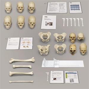 Forensic osteology is the study of bones in the medico-legal setting. Specialists, such as forensic anthropologists, use their knowledge of forensic osteology to determine sex, ancestry, stature, identifying characteristics, approximate age at death and possible cause of death. Evidence of trauma and/or illness can also provide valuable clues. Osteology plays a significant role in identifying remains encountered at crime scenes and war-devastated regions all over the world. Bone Clones has been able to use its expertise in reproducing the finest details of skeletonized material to create Forensiclones™ a collection of skulls and skeletons that are specifically suited for this area of study. These replicas, cast from original natural bone material that experts have analyzed, can help in understanding events that transpired with no reliable witnesses to shed light on them. |